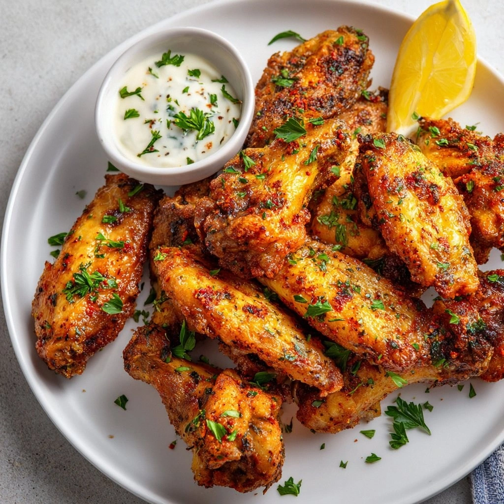 A splash of lemon juice brightens the dish, cutting through the richness and adding a zesty lift. Fresh parsley not only adds color but also a burst of herbaceous freshness that contrasts the deep flavors. A dash of dried thyme and oregano rounds out the seasoning, giving the wings an aromatic complexity that feels home‑grown.