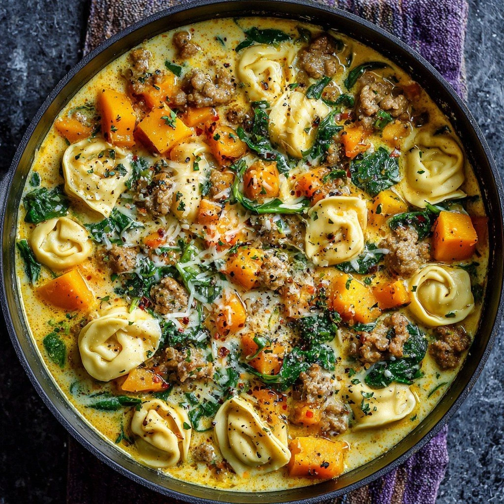 Picture the aroma: the sweet, earthy scent of caramelized onions mingles with the sharp, nutty perfume of Parmesan, while a faint whisper of thyme lingers. The sound is a gentle simmer that crackles like a cozy campfire, punctuated by the occasional splash of broth. The first bite is a silky, velvety coating that wraps the tender chicken and al dente tortellini, followed by a satisfying burst of savory broth that dances on the tongue. The texture is a harmonious blend—soft pasta, crisp vegetables, and a creamy sauce that clings like a velvet glove. You feel the warmth radiate from the bowl, comforting your hands and soothing your soul.